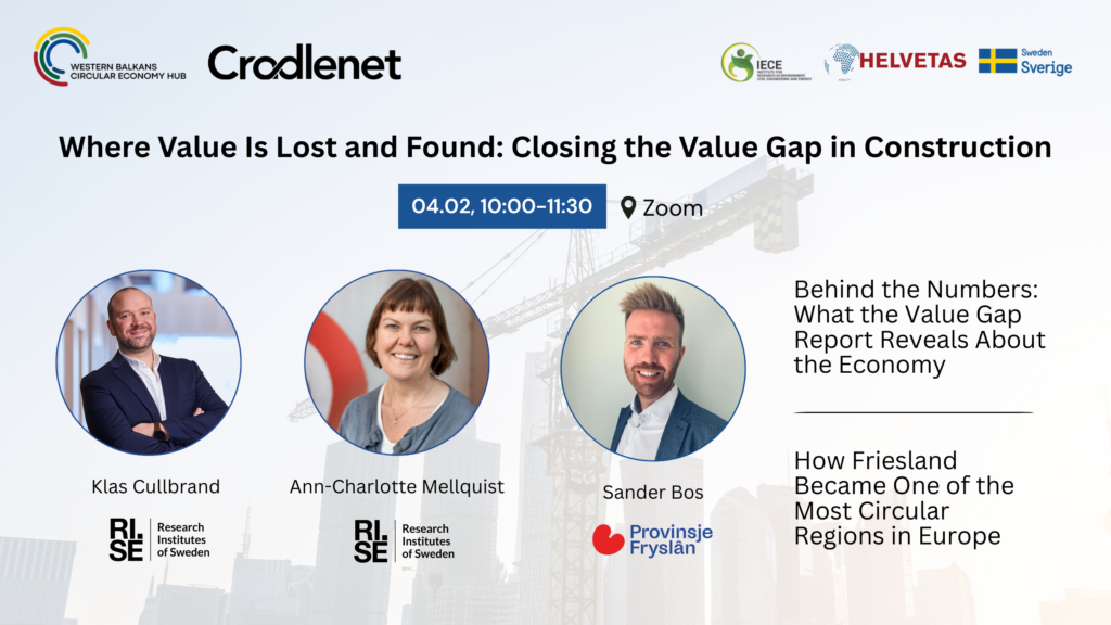 During the event, speakers from across Europe and the Western Balkans will be brought together to explore how circular economy approaches can help close this value gap, combining data, public-sector leadership, innovation tools, and real-life practices.